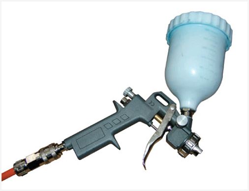 - Залив краску в распылитель, приступайте к окрашиванию. Держите инструмент под прямым углом к поверхности, равномерно его перемещая.