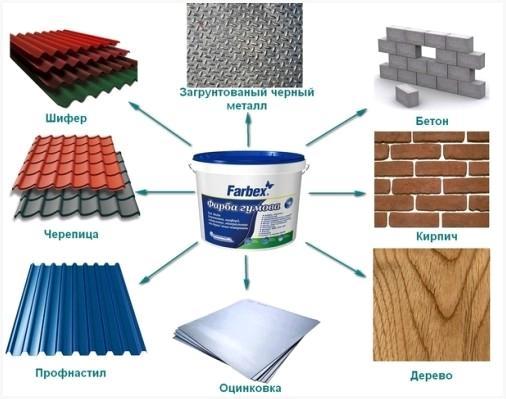 - Относительно юный материал – краска на резиновой базе прочно завоевал свою нишу. Характеристики разрешают применять ее для окраски любых поверхностей (дерево, металл, бетон, штукатурка) в помещениях с повышенной влажностью. Краска образует эластичное покрытие стойкое к трещинообразованию, шелушению.