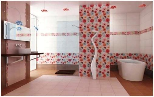 - Кое-какие мастера и дизайнеры советуют поделить территории унитаза и ванной, создав, так, своего рода орнамент на поверхности пола.