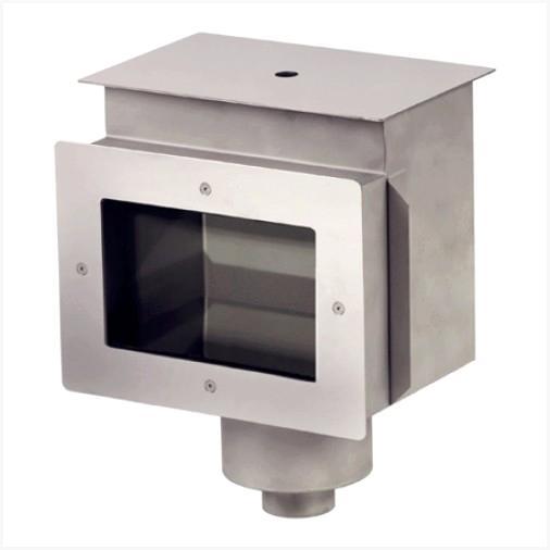 - Встроенные скиммеры для бассейна. Данный тип устанавливается конкретно в стенку чаши в ходе ее строительства. Водосборные отверстия оснащены плавающей заслонкой, предотвращающей попадание горячей и чистой воды с нижних слоев. Делать монтаж аналогичного устройства на открытых водоемах рекомендуется с учетом преобладающего направления ветра. Это существенно улучшит поверхностную фильтрацию воды и предотвратит образование застойных территорий.