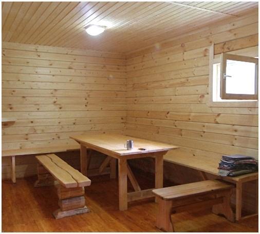 Площадь комнат выдерживалась с учетом представления на человека 5-8 м2 свободного места. Представленный несложный интерьер бани, фото расположено под текстом, воссоздает атмосферу прошлого и показывает обычный домашний уголок чистоты. В предбаннике не только отдыхали по окончании водной процедуры, но и устраивали посиделки, дискуссии ответственных вопросов семьи.