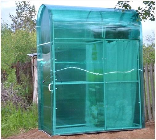 Дверь, нужно сделать поликарбонатной, для этого предварительно сооружают ее каркас, к которому крепят петли. По окончании установки поликарбоната, к ней присоединяют ручку. Посредством влагонепроницаемой банной шторки, поделите отдел мойки и переодевания.