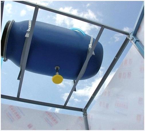 Дабы сделать эффективность нагрева еще больше, сверху бака необходимо установить поликарбонатную крышу, которая создаст тепличный эффект и сохранит теплоту воды.