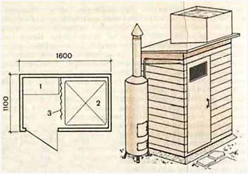 Составные элементы конструкции — момент личный. Но самый востребованный вариант — кабинка, слив и стационарная бочка для воды. Кстати, при разработке проекта учитывайте источник воды и место слива. Идеально, в случае если слив находится рядом от сточной ямы.