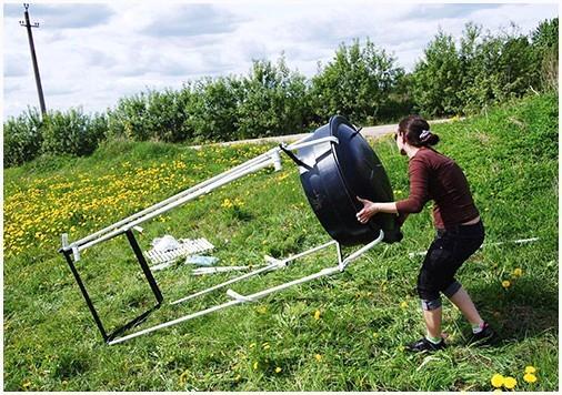 Размечаем территорию и устанавливаем столбчатый фундамент. По углам взятого прямоугольника вбиваем столбы из дерева. Предварительно обработайте их влагоотталкивающим раствором и антисептиком. Собираем железный каркас, скрепляя отдельные части посредством долгих болтов. В каркаса производится перевязка, которая и послужит основанием для пола.