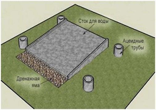 Не следует забывать и о водоупорном слое. Это возможно забетонированный уклон, гидростеклоизол, рубероид, пленка.