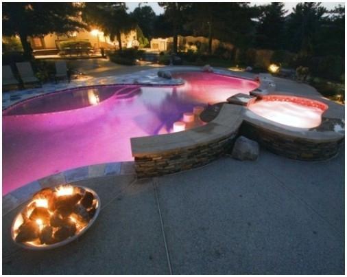 Подсветка производится конкретно в бассейна, потому, что вода хорошо отражает свет. Так, в случае если делать освещение снаружи, вода отразит солидную часть света от поверхности, а толща воды останется в темноте. А вдруг подсветку расположить изнутри, то свет свободно может выходить наружу, освещая не только воду, но и некоторое пространство над бассейном.