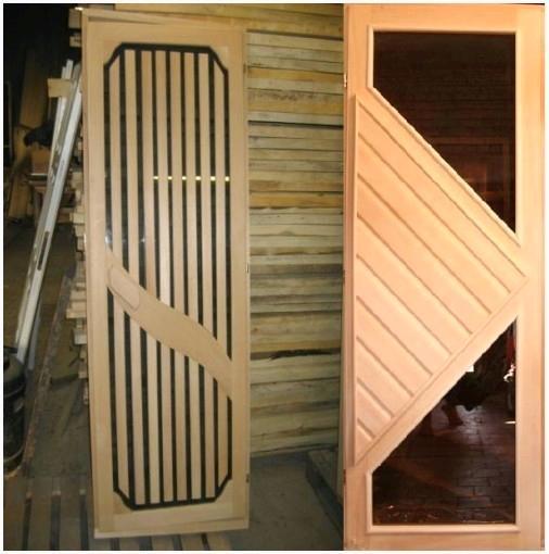 Сейчас возможно перейти конкретно к сборке дверей. Всего существует два вида дверных полотен, каковые устанавливаются в банях: