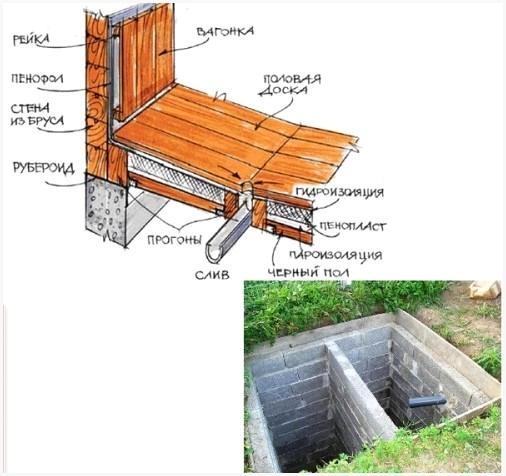 Кроме названных выше ограничений, нужно подчернуть, что наличие сливной ямы под полом бани значительно снижает гигиеничность принимаемых банных процедур, особенно летом, в связи с чем, появляется необходимость отвода сточных вод за пределы бани.