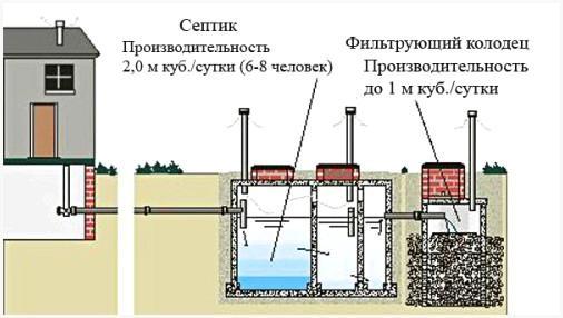 - Септик, делающий функцию отстойника;