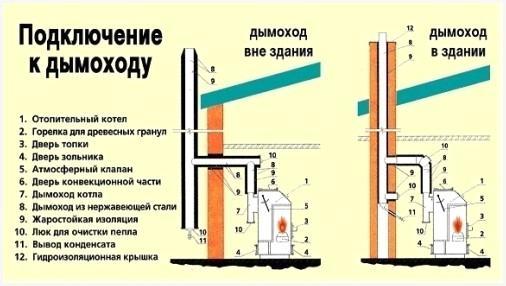 - При монтаже печи и дымохода необходимо применять трубу из нержавеющей стали. Трубы нельзя протягивать через жилые помещения. Дымоход должен быть до пяти метров от уровня горелки. Не забудьте герметично присоединить дымовую трубу к печи.
