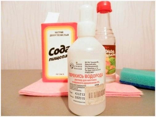 - Приготовьте смесь перекиси водорода и соды, исходя из соотношения 1: 2;