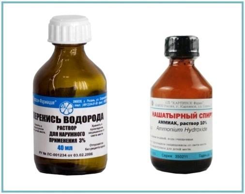 - Смешайте нашатырный спирт и перекись водорода в пропорции 2: 1;