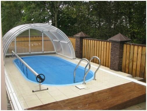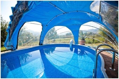 В случае если высота павильона больше двух метров, а площадь больше размеров самого бассейна, то павильон представляет собой отдельное помещение, которое возможно оборудовать системой отопления, и купаться в бассейне кроме того зимой.