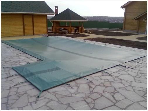 В случае если бассейн не употребляется долгое время в купальный сезон, то применение брезентового покрывала надежно защитит воду от испарения, загрязнения, цветения.