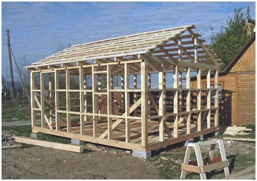 Не забудьте соорудить дополнительную стойку в месте присоединения рамы к стенкам либо к перемычке. По окончании закрепления всех элементов гвоздями контролируем раму на прямоугольность. Сборку начинают с формирования угла. Сперва собирают стенке, которая будет сообщаться с обвязкой. Контролируем на вертикальность и крепим посредством временных подкосов. Потом нужно установить под прямым углом другие рамы. Обвязки закрепляются досками, каковые после этого прибиваются гвоздями. К обшивке приступают лишь по окончании завершения монтажа каркаса.