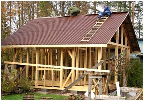 Нужно, дабы кровля была вентилируемая. Между контрбрусом и стропилами укладывается пленка, в то время как обрешетка набивается прямо на брусья. Для кровельных работ оптимален ондулин. Фронтоны закрывают заблаговременно подготовленными страницами. Сейчас возможно приступать к отделке.