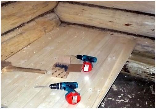 Укладка пола в бане протекающего типа отнимает меньше времени и сил. Доски напиливаются так, дабы между ними и стеной оставался зазор в 2 см. Первую половицу рекомендуется прибивать гвоздями, толщина которых превышает толщину доски в два раза. Следующие половицы укладываются с шагом в 3 см.