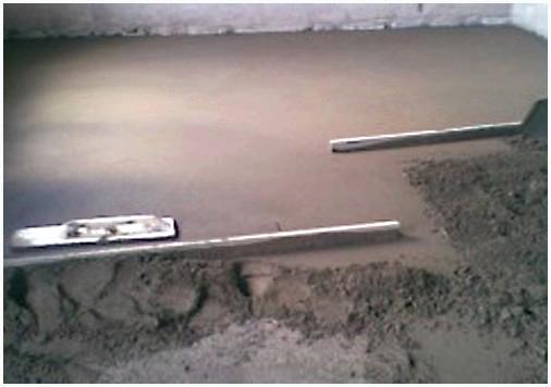 Для двойной укладки нужно верно приготовить цементный раствор. Для нижнего слоя в состав смеси должны входить большие щебеночные фракции (размером 35 мм). Толщина этого слоя — 150 мм. В случае если баня маленькая, то стяжка укладывается сходу на всем основании, в другом случае эргономичнее поделить территорию при помощи деревянных направляющих на 1000 мм-ые полосы. Стяжка окажется прекрасной и ровной.