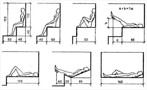 Протяженность, что есть удобной для сидения, — 90 сантиметров, дабы лежать с согнутыми ногами, — не меньше 150 сантиметров, дабы лежать, вытянув ногами, — больше 180 сантиметров. На скамью длиной 95 сантиметров возможно присесть с вытянутыми ногами, мало их немного подняв.