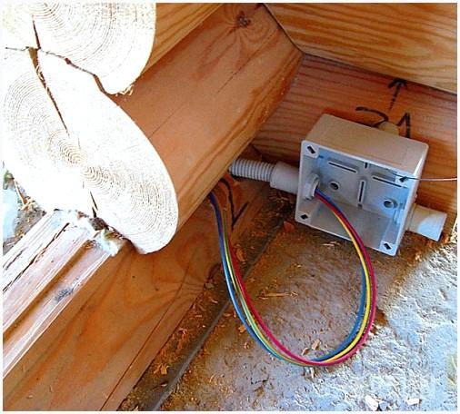 Нежелательно, дабы проводка к выключателям и розеткам была проложена открытым методом, за исключением деревянных построек. Не смотря на то, что желобок под провод несложно выдолбить в деревянной стенке, но ее позже сложно задекорировать. Исключение образовывает срубе, где кабель укладывают на стыке бревен.