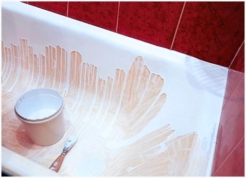 - Предварительная подготовка при применении данного способа пара отличается: исчезает необходимость в проведении шлифовки поверхности, поскольку достаточно будет обработать ванну наждачной бумагой, по окончании чего шепетильно ополоснуть ее горячей водой;