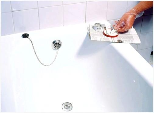 - В соответствии с рекомендациям, нанесение материала начинают по периметру ванной, шепетильно промазывая любой сантиметр поверхности. Наряду с этим особенное внимание необходимо уделять отверстиям слива и шепетильно втирать состав, отказавшись от нанесения толстого слоя и нанеся 2 более узких слоя. По окончании того, как края прокрашены, эмаль наносят в поперечном направлении сверху и до дна.
