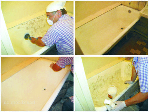 - Способ «наливной ванны» либо восстановление покрытия чугунной ванны посредством жидкого акрила и стакрила;
