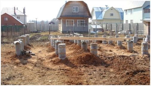 Маленький вес конструкции разрешает устанавливать ее на столбчатый фундамент. Количество столбов зависит от размера бани и ее веса. В любом случае столбы должны быть под углами здания, под краями внутренних стен и в местах их пересечения.