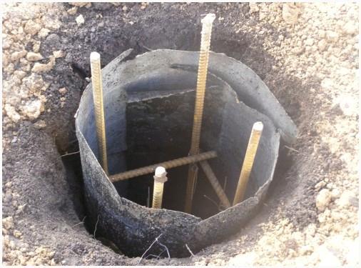 - Для заливки для того чтобы фундамента нужно пробурить в грунте отверстия, глубиной от 1 до 1,5 метров.