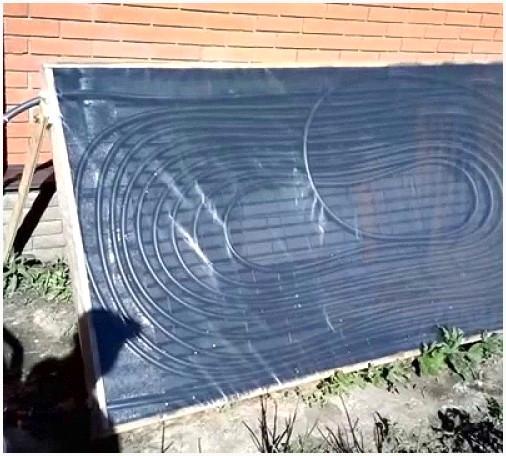 Система работает по такому принципу: на дне бассейна находится электронасос, который перекачивает холодную воду. Вода, со своей стороны движется в пенопластовый змеевик. Нагрев теплового носителя осуществляется при помощи действия на него солнечного излучения. Подача уже горячей воды осуществляется через гофрированные трубы на дне бассейна с противоположной стороны.
