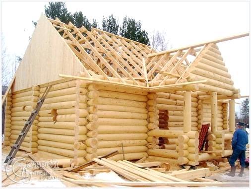 Основные элементы крыши бани – несущие конструкции (стропила и прогоны) и кровля (обрешетка и гидроизолирующий слой). На верхнюю поверхность стен укладываются балки перекрытия и фиксируются в горизонтальном положении. На балки устанавливаются стропила, наряду с этим в случае если в этом качестве употребляются бревна, то их диаметр не должен быть менее 11-12 см, а вдруг брусья, то их сечение не должно быть меньше 60 см. Стропила прикрепляются при помощи металлических скоб, а между собой фиксируются коньковыми брусьями.