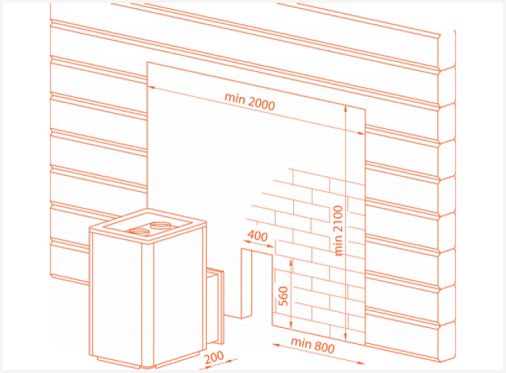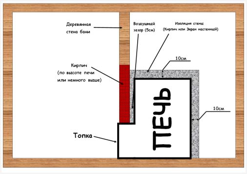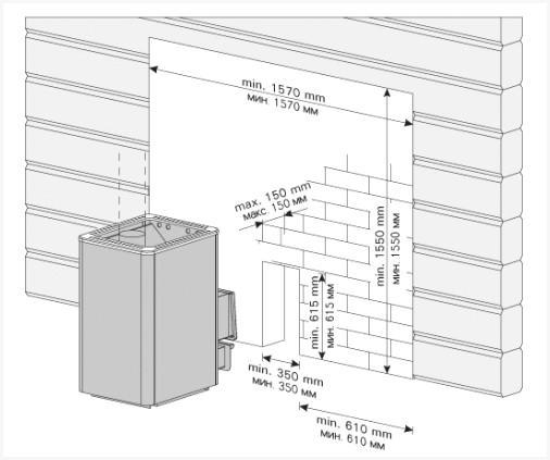 Подготовка стен. В совершенстве подобная схема установки будет уместна лишь в том случае, если стенки изготовлены из любого негорючего материала, а также и кирпича. В противном случае, если стенки изготовлены из классической древесины, рекомендуется выполнить их предварительную облицовку огнестойкими изоляционными материалами.