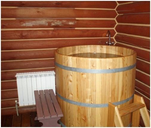 - Деревянную бочку возможно установить прямо под открытым небом либо возвести под нее баню. Последний вариант предполагает эксплуатацию купели круглогодично. Готовые изделия, предлагаемые разными производителями, нужно только установить на запланированное место и подключить к электропитанию.