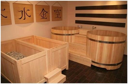В классической японской бане в обязательном порядке предусмотрено место для предварительного мытья, т.к. по традиции в «Фурако» человек должен садиться уже чистым.