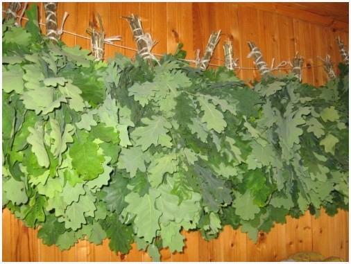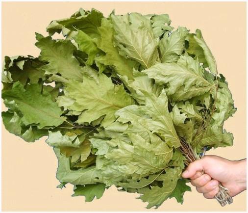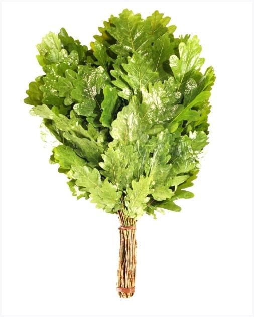 Дубовые веники, запах которых содействует понижению артериального давления, снижают стресс и нормализуют работу центральной нервной системы. Оказывают благоприятное влияние на жирную кожу, сужая поры и ликвидируя очаги воспаления;