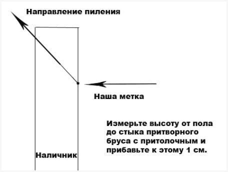 Совет: верхний наличник готовится в самую последнюю очередь, лишь по окончании того как обе боковые планки уже обрезаны и установлены. Это разрешит не допустить погрешностей при разметке и исключить возможность образования щелей на стыке.