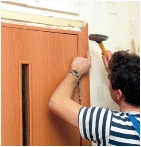- Прибивая планку к дверной коробке, не рекомендуется бить прямо по ней. Для данной цели готовится деревянный брусок, обмотанный тканью;