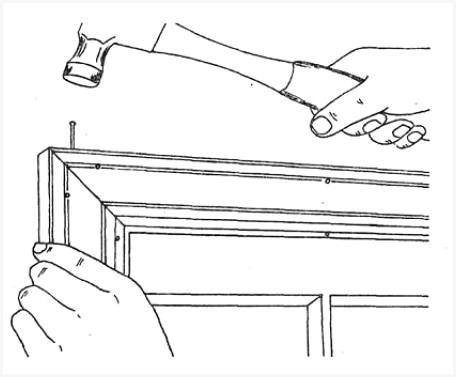 - Приложив готовый наличник и выровняв его, сильными ударами через брусок сажаем его на гвозди;