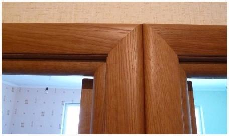 Для избежания щелей в стыках наличников, углы верхней планки отмеряются по спилам вертикальных планок с учетом их погрешностей.