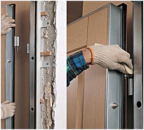 По окончании исполнения демонтажа входной двери, производится ее установка. Входная дверь устанавливается в проеме так, дабы находится на одном уровне с наружной стеной. Крепежные элементы фиксируются в стенке посредством намерено установленных пластин, имеющих маленькие отверстия.