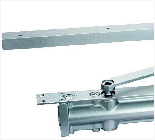 4. В то время, когда устройство и рычаг закреплены направляться установить на поверхность доводчика еще одну часть, несущую ответственность за тягу и провести настройки в соотношении с их длиной.