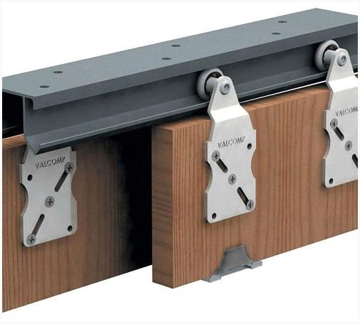 У каскадной двери монтируют по 2 роликовых механизма на каждое полотнище, и достаточно 2 направляющих желоба. Для каскадных дверей необходимо по 1 нижнему желобу для каждого полотна.