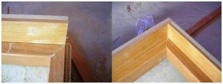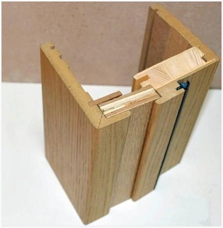 Доборы возможно устанавливать как по отдельности так и собрав в готовую П-образную рамку. При собирании П-образной рамки соединять элементы между собой нужно узкими финишными гвоздями с предварительным засверливанием добора.