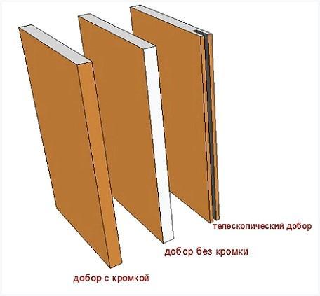 Применение саморезов для доборов из МДФ и ДВП не нужно, потому, что они смогут расколоть изделие, кроме того при засверливании. Если вы используете телескопические доборы и наряду с этим поперечина опирается на стойку, в поперечине нужно выполнить паз для установки телескопического наличника.