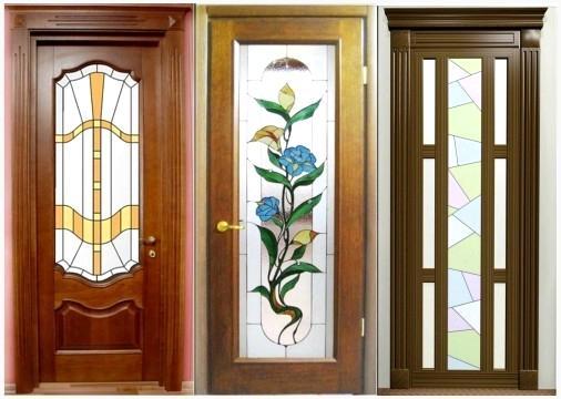 В случае если дверь декорируете стеклом, украшенным двусторонней росписью с имитацией витража, рисунок наносят перед тем, как филенка будет вставлена в раму. Стеклянные филенки закрепляют посредством штапиков, поскольку данный метод разрешает заменить вставку в случае ее повреждения.