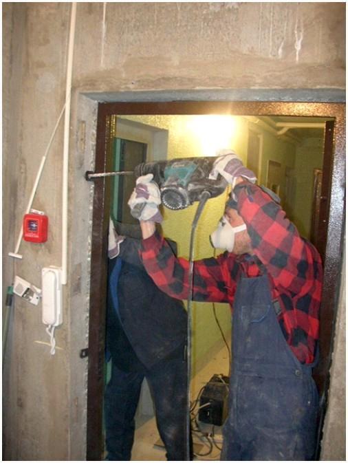 - Подготовка проема, которая содержится в удалении мешающих кусков раствора и другого мусора;
