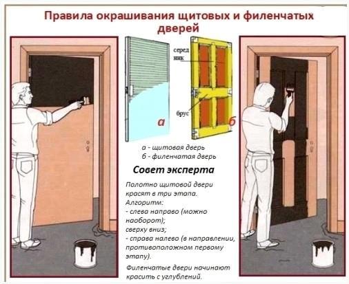 Посредством красок возможно не только красить новые двери, но и реставрировать ветхие полотна. Основное разобраться в видах краски и выбрать нужную.