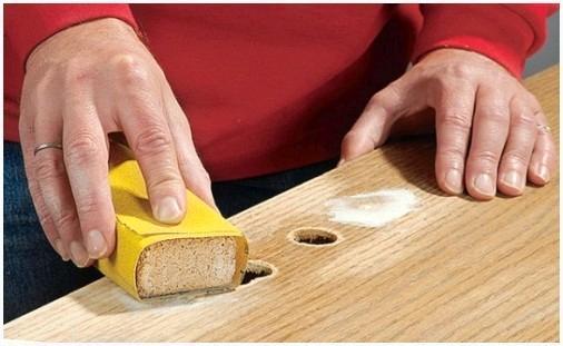 - Заделывая большой недостаток, паяльником с толстым жалом разогревают мало мебельного воска. Размягченную, но не жидкую смесь накладывают на ремонтируемый участок. В случае если сломалась фигурная часть, то массой необходимо попытаться повторить ее контур. В случае если заделывается щель на ровной поверхности, то заплатка обязана пара выступать. Это необходимо чтобы после этого наждачной бумагой выровнять и сгладить ее.