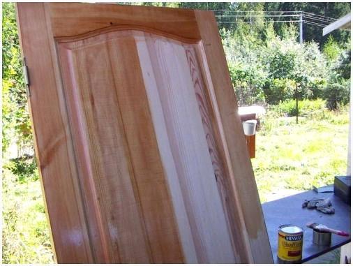Совет: в случае если красится дверь уличной постройки, то принципиально важно где производятся работы и каким составом. В случае если она расположена на солнце, то стоит выбрать долгосохнущие составы, каковые при нагревании лучше попадают в структуру дерева и более равномерно наносятся. В случае если лак быстросохнущий, то он через чур быстро испарится, что приведет к неравномерности покраски. Значительно лучше, в случае если дверь предварительно снимется с петель и будет окрашиваться в помещения. Это окажет помощь избежать налипания пыли и насекомых.